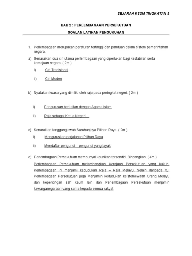 Nota ringkas buku teks sejarah, soalan dan latihan sejarah kssm tingkatan 5 bab 2.3. Di malaysia, sejarah awal sistem federalisme telah dibentuk. Bahkan, konsep perlembagaan itu perlu juga diperluaskan dalam banyak perkara dan aspek yang berhubung dengannya seperti sumber, ciri, jenis, .